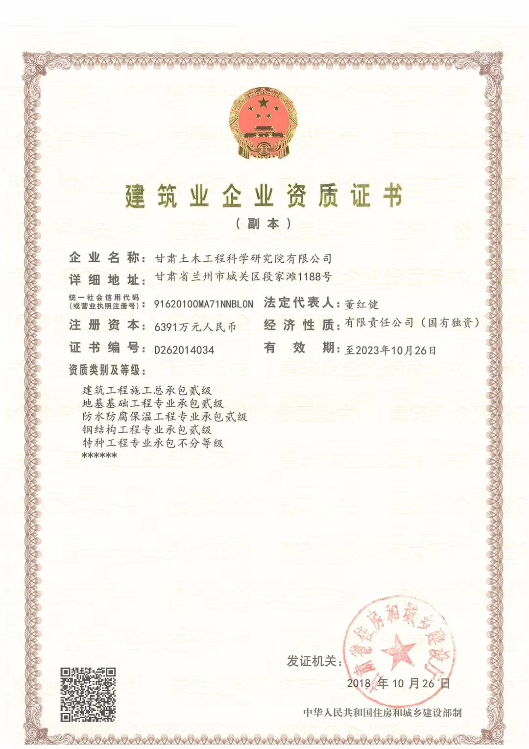 近日,公司建筑工程施工總承包貳級資質(zhì)和城鄉(xiāng)規(guī)劃丙級資質(zhì)獲甘肅省住房和城鄉(xiāng)建設(shè)廳和甘肅省自然資源廳批準(zhǔn),標(biāo)志著公司資質(zhì)建設(shè)取得重大進(jìn)展。