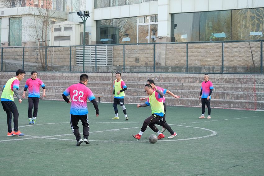 本次比賽由職能、設(shè)計(jì)聯(lián)隊(duì)對(duì)陣巖土、檢測(cè)聯(lián)隊(duì)。雖然天氣嚴(yán)寒,但大家在球場(chǎng)上的熱情絲毫不減。隊(duì)員們激烈拼搶?zhuān)铰娜顼w,運(yùn)球熟練,傳球精彩,搶斷漂亮,射門(mén)精準(zhǔn)。比賽波瀾跌宕,賽場(chǎng)精彩紛呈。最終巖土、檢測(cè)聯(lián)隊(duì)技高一籌以8:7獲得勝利。