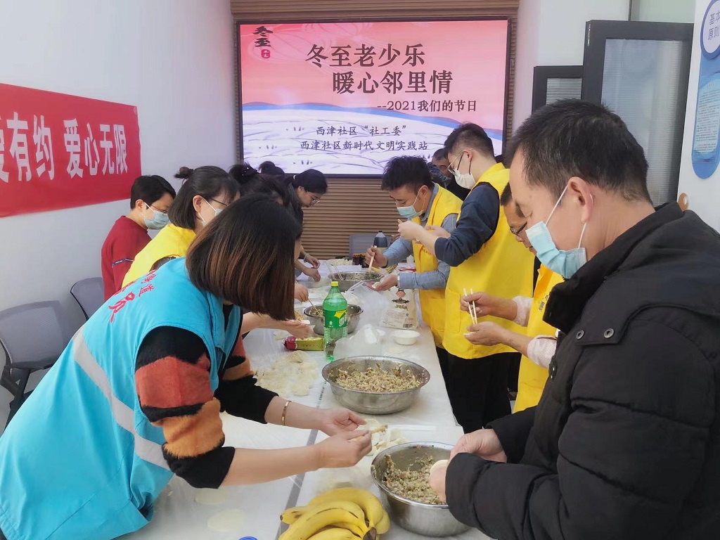 為了推動“我為群眾辦實事”實踐活動取得實效,讓失獨家庭的群眾過上一個溫暖愉快的冬至節(jié),12月21日,甘肅工程咨詢集團志愿者服務(wù)隊聯(lián)合敦煌路街道西津社區(qū),組織轄區(qū)失獨家庭11名居民群眾舉辦了“冬至老少樂 暖心鄰里情”活動,為他們奉上了一道溫暖祥和的餃子“盛宴”。