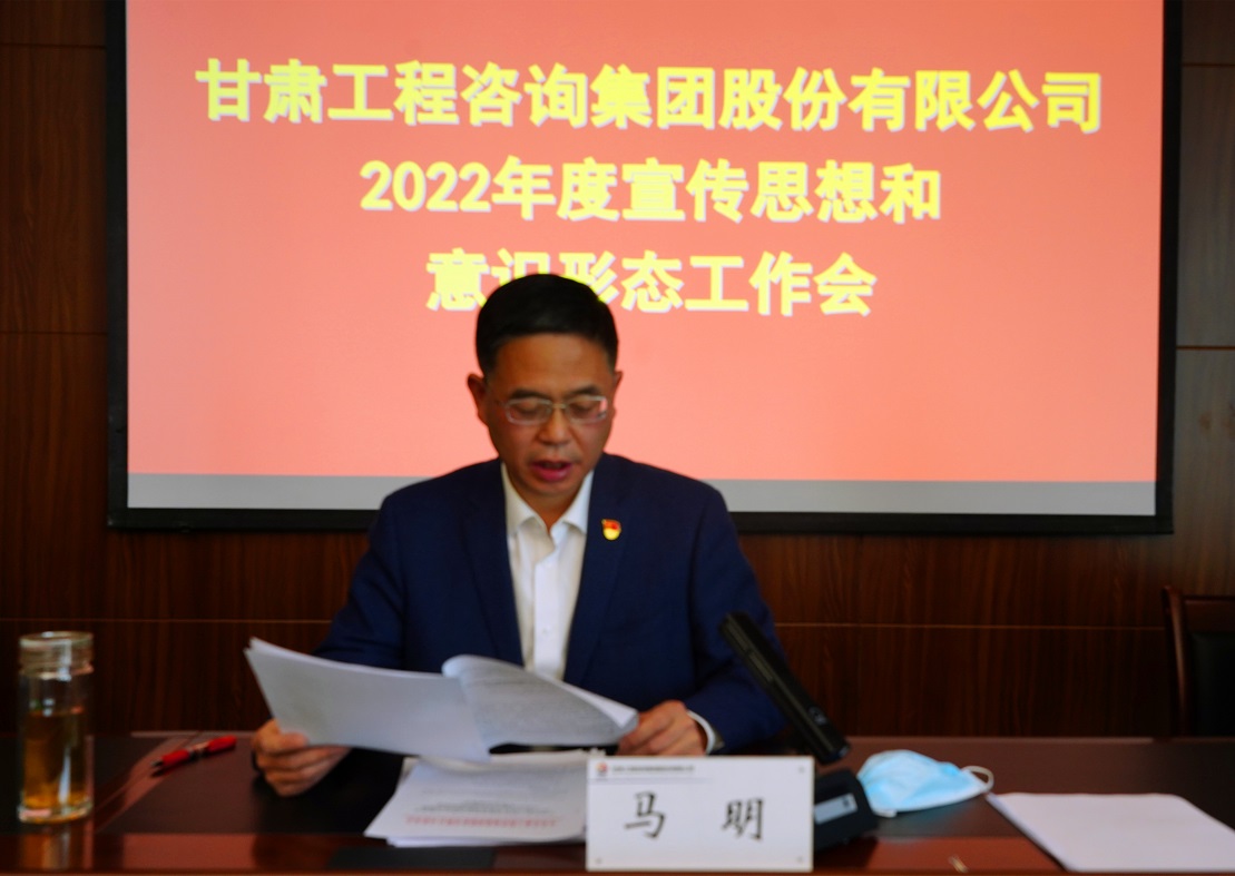 3月28日,甘肅工程咨詢集團(tuán)召開2022年度宣傳思想和意識(shí)形態(tài)工作會(huì)議,傳達(dá)學(xué)習(xí)了全國(guó)、全省宣傳部長(zhǎng)會(huì)議精神,黨委副書記王春燕總結(jié)了2021年度宣傳思想和意識(shí)形態(tài)工作情況并安排部署2022年度工作,黨委副書記、總經(jīng)理馬明作講話。黨委委員、監(jiān)事會(huì)主席焦軍毅主持會(huì)議,集團(tuán)公司領(lǐng)導(dǎo)班子成員,相關(guān)部門負(fù)責(zé)人在主會(huì)場(chǎng)參加,各子公司黨委書記、董事長(zhǎng)(執(zhí)行董事)、總經(jīng)理、黨委副書記,相關(guān)部門負(fù)責(zé)人在分會(huì)場(chǎng)參加。