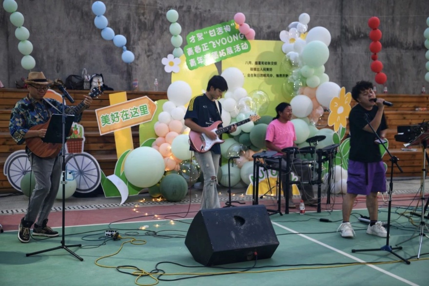 星空下,勁歌熱舞點燃現(xiàn)場?!案首稍儭鼻嗄陚兏髡顾L、各顯其能,開啟了一場青春音樂風暴。伴隨著巔峰樂隊的演奏,青年們積極參與猜歌大作戰(zhàn)、完成樂隊組建及牌排練公演,傳統(tǒng)樂曲、流行音樂、潮流嘻哈、樂隊搖滾……多元歌曲悉數(shù)亮相,整個現(xiàn)場沉浸在歡樂的海洋中。