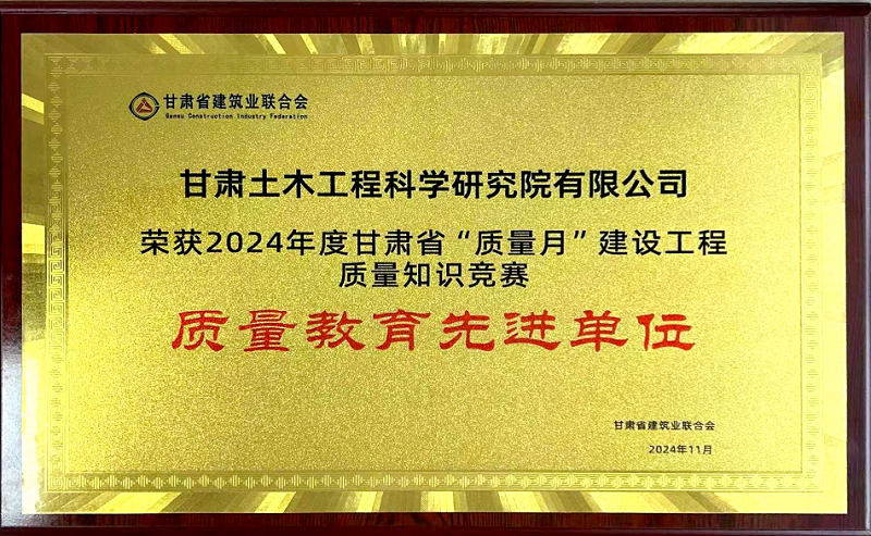 甘肅省建筑業(yè)聯(lián)合會舉辦的2024年度甘肅省“質(zhì)量月”建設(shè)工程質(zhì)量知識競賽結(jié)果已經(jīng)揭曉,我公司榮獲“質(zhì)量教育先進(jìn)單位”稱號。